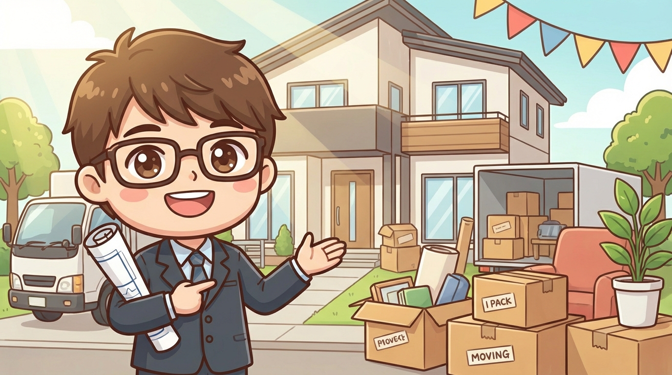 新築住宅への引越しやることリストを時系列で完全網羅。引越し費用の相場(10〜30万円)、各種手続き一覧、業者の選び方、近隣挨拶のマナー、入居前にやるべき傷チェック・防虫対策まで全手順を解説します。